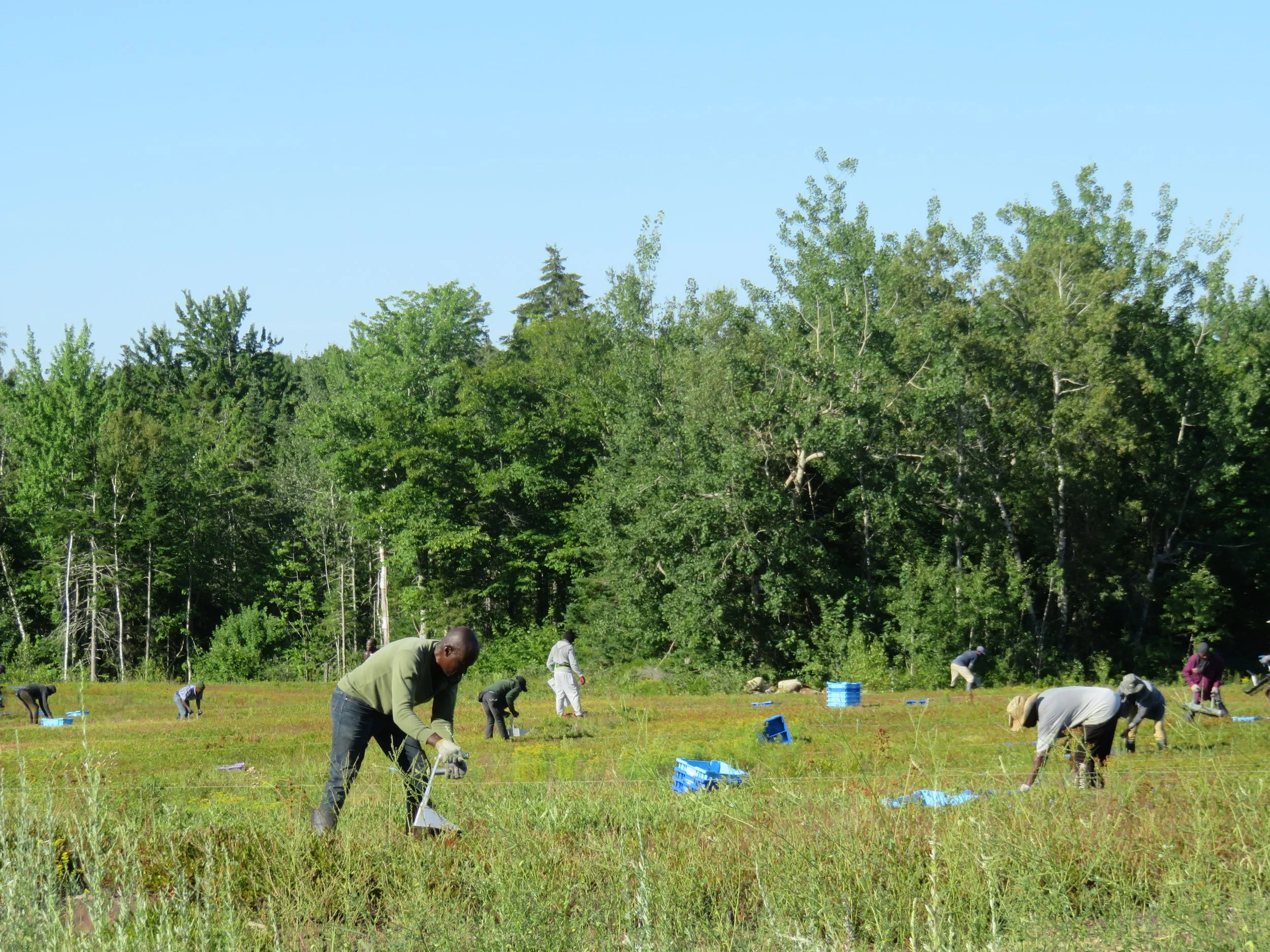 Last year no blueberries grew in the fields near our street. This year they did. When it’s picking time, the blueberry company brings in workers to harvest the berries. As you can see, the berries are harvested by hand and not by machine.